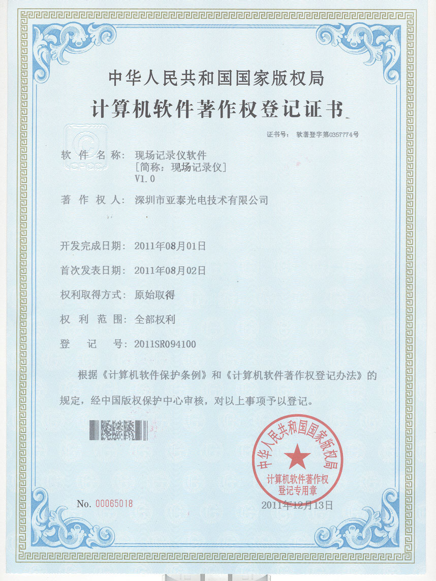 現(xiàn)場(chǎng)記錄儀軟件著作權(quán)