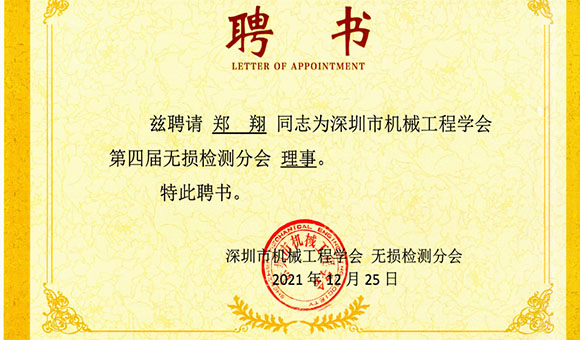 重磅!亞泰光電當(dāng)選為深圳市機械工程學(xué)會無損檢測分會理事單位