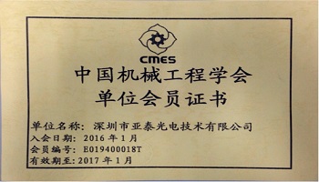 熱烈祝賀深圳市亞泰光電正式成為中國機械工程學(xué)會單位會員