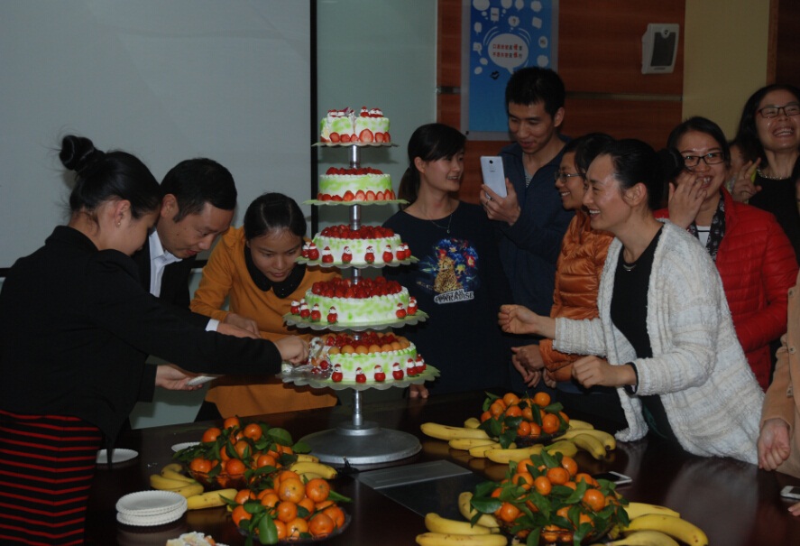 2015年12月25日下午,深圳市亞泰光電技術有限公司全體員工歡聚大會議室,喜慶圣誕。此次活動的驚喜“圣誕老人蛋糕”由我們季度促銷活動獲獎者傾情贊助。亞泰人歡聚一堂,分享美食,其樂融融,喜迎2016!