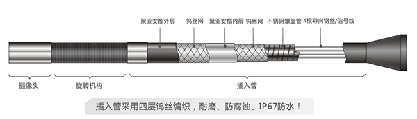 SIE-P便攜式工業(yè)內(nèi)窺鏡插入管材質(zhì)為四層鎢絲編織耐磨管,防水等級(jí)IP67