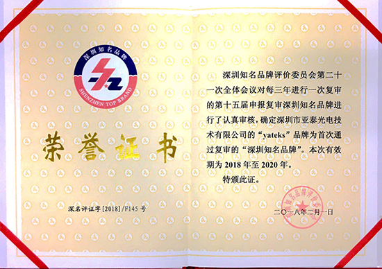 深圳市亞泰光電技術(shù)有限公司致力于成為全球領(lǐng)先的工業(yè)內(nèi)窺鏡和油液監(jiān)測(cè)產(chǎn)品的研發(fā)和制造商,公司于2015年1月通過(guò)評(píng)審,獲得“深圳知名品牌”稱(chēng)號(hào)!此次復(fù)審順利通過(guò),既是亞泰光電堅(jiān)持品質(zhì)如一、不斷進(jìn)取的結(jié)果,同時(shí)也說(shuō)明了亞泰光電產(chǎn)品在業(yè)界內(nèi)的知名度、美譽(yù)度和影響力!