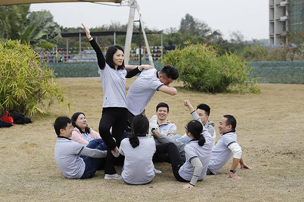 12月25日早8:00公司所有同事乘坐旅游大巴經(jīng)過(guò)一個(gè)半小時(shí)的行程后到達(dá)位于惠州博羅的歐野奇境營(yíng)地,這是一片福田福地,背靠羅浮山脈,營(yíng)地內(nèi)數(shù)十畝草場(chǎng),百畝園林,魚塘和水庫(kù)如明珠鑲嵌,無(wú)需修飾、渾然天成,來(lái)到營(yíng)地稍作休息合影拍照后,此次戶外拓展對(duì)接教練告訴我們,這次的年會(huì)是一次比較有意義、有創(chuàng)新的團(tuán)隊(duì)拓展活動(dòng),在此次拓展培訓(xùn)中,所有參訓(xùn)隊(duì)員被分為八個(gè)小組,各個(gè)小組的成員經(jīng)過(guò)一番頭腦風(fēng)暴,一個(gè)個(gè)有趣的團(tuán)隊(duì)名稱,一個(gè)個(gè)響亮的團(tuán)隊(duì)口號(hào),一個(gè)個(gè)富有特點(diǎn)的團(tuán)隊(duì)POSS被隊(duì)員們鮮明地、極富創(chuàng)意的表現(xiàn)出來(lái)?!凹t火隊(duì)”、“超越隊(duì)”、“野狼隊(duì)”等團(tuán)隊(duì)的精彩表現(xiàn),整個(gè)活動(dòng)中穿插的一個(gè)個(gè)拓展小游戲,在輕松愉快的氛圍中,放松心情,熔練團(tuán)隊(duì),讓大家在每個(gè)游戲里面感覺(jué)到每個(gè)人的責(zé)任和團(tuán)隊(duì)凝聚力。