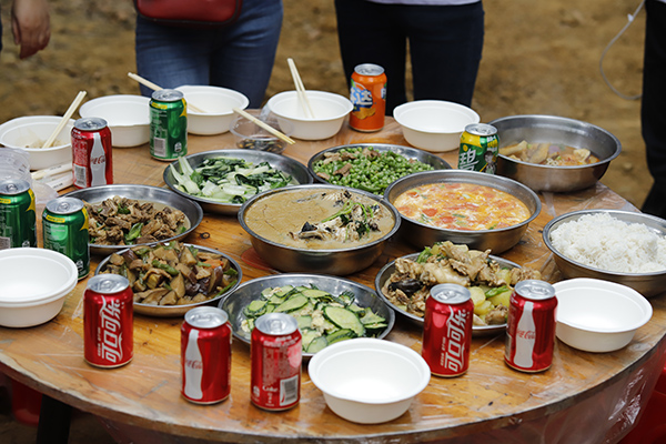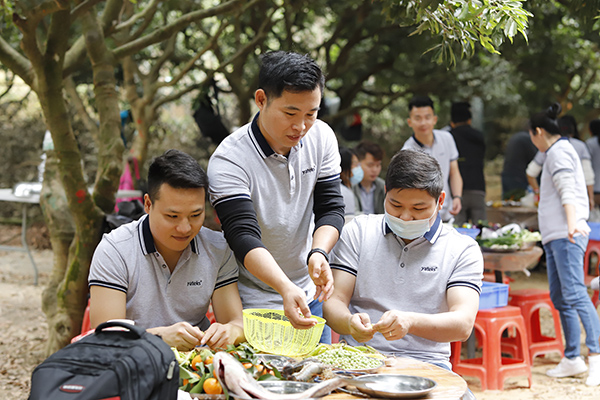 中午時(shí)分,年會(huì)開(kāi)始了吃貨環(huán)節(jié),大家自己動(dòng)手、豐衣足食,各團(tuán)隊(duì)將自帶的食材及酒水、飲料等歸集一起準(zhǔn)備各自小組的午餐,各組隊(duì)成員有的切菜、有的洗菜,有的拾材,有的炒菜,一盤盤香噴噴、美味可口的家常菜西紅柿炒蛋、虎皮尖椒、年年有魚、肉沫茄子等美味可口的菜肴很快就做好并迅速被一掃而光,其樂(lè)融融,吃得好、喝得好,玩得好,好不熱鬧。