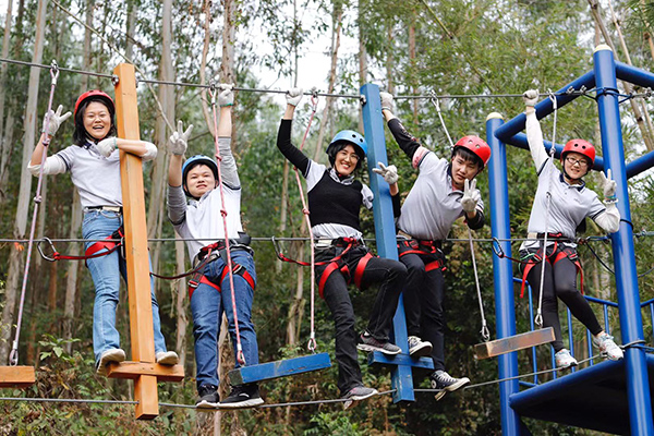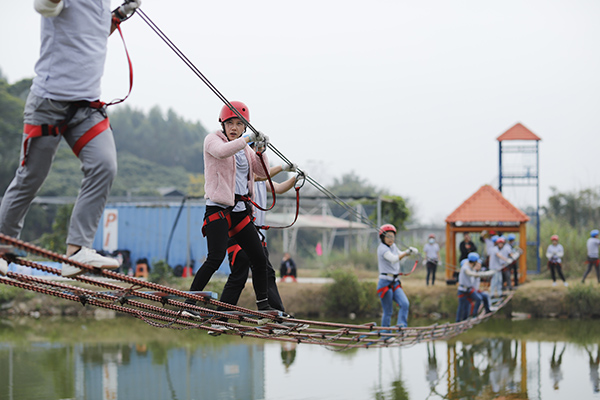野炊結(jié)束午間休息后,年會(huì)進(jìn)入到下半場(chǎng),下午兩點(diǎn)開(kāi)始,所有隊(duì)員在教練的指導(dǎo)下抖擻精神、重新整裝再出發(fā),開(kāi)始叢林穿越、高空溜索、飛奪瀘定橋等項(xiàng)目,隨著高空溜索、飛奪瀘定橋等項(xiàng)目的展開(kāi),各個(gè)小組發(fā)揮各自的優(yōu)勢(shì)努力完成每一個(gè)項(xiàng)目,每個(gè)項(xiàng)目的進(jìn)行和完成極大的鍛煉了團(tuán)隊(duì)成員的堅(jiān)強(qiáng)意志、增強(qiáng)了大家的團(tuán)隊(duì)凝聚力和整體向心力,同時(shí)每一個(gè)人也感受到了團(tuán)隊(duì)合作與溝通的重要性。