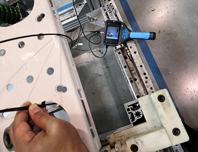 本項目需求引入自動化檢測設(shè)備,用以檢測電氣開關(guān)機械擋卡安裝位置是否到位。主要是與客戶方試驗并確認亞泰內(nèi)窺鏡探頭拍攝位置,演示內(nèi)窺鏡直管3mm側(cè)視鏡頭拍攝效果,并確定最終內(nèi)窺鏡檢測實施方案。