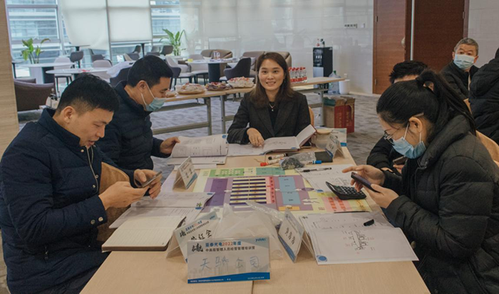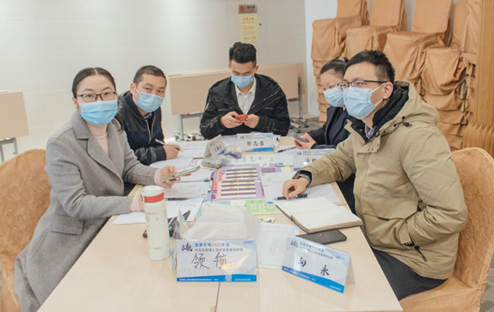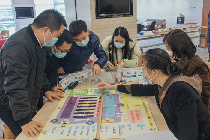參訓學員分成6個小組,模擬企業(yè)實際運作背景,每組代表一家虛擬企業(yè),各小組成員按角色分工,分別擔任企業(yè)中的總裁、市場營銷總監(jiān)、生產(chǎn)總監(jiān)、財務(wù)總監(jiān)、研發(fā)總監(jiān)等職位,一家家企業(yè)相繼成立。