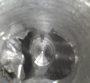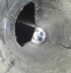 客戶地處華南區(qū),主營手機、電池、電腦配件等相關配套部件,客戶方用內窺鏡檢測的是其生產的鋁合金機加工件,用于手機后蓋壓模用,客戶生產手機后蓋時,會用到磨具,他們內部稱鋁合金機加工件,上面交錯孔大小不一,主要用內窺鏡看內部的破孔處毛刺等情況。