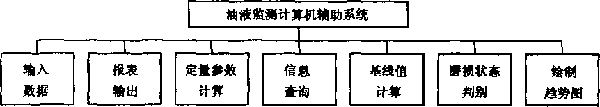 典型的油液監(jiān)測計(jì)算機(jī)輔助系統(tǒng)由數(shù)據(jù)輸入、報(bào)表輸出、信息查詢、定量參數(shù)計(jì)算、基線值計(jì)算、磨損狀態(tài)判別趨勢圖的繪制等模塊組成,系統(tǒng)結(jié)構(gòu)如 圖1.1所示。