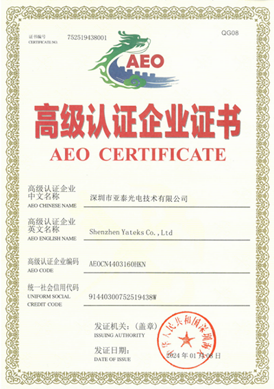 在新的歷史時(shí)期,亞泰光電已經(jīng)迎來了一個(gè)重要的里程碑——海關(guān)AEO高級(jí)認(rèn)證。這一榮譽(yù)不僅是對我們企業(yè)實(shí)力的肯定,更是對我們未來發(fā)展的期待。