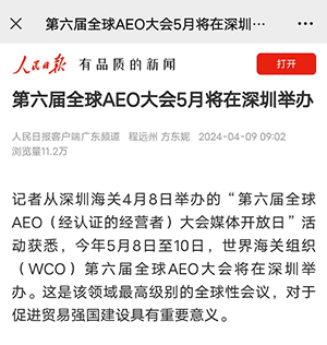 https://wap.peopleapp.com/article/7392159/7224555(人民日報(bào)——第六屆全球AEO大會(huì)5月將在深圳舉辦)