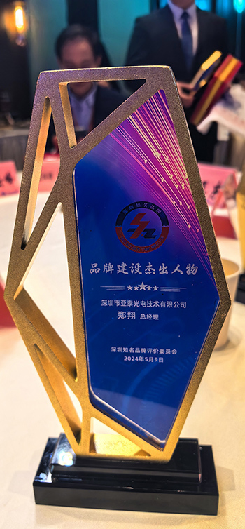 7:00 PM,國際品牌周之2024品牌領(lǐng)袖之夜在深圳廣電金融中心舉行,亞泰光電總經(jīng)理鄭翔獲評“品牌建設(shè)杰出人物”獎項(xiàng)。