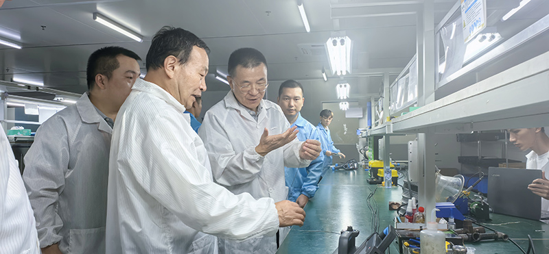 俞院士一行對(duì)公司先進(jìn)的實(shí)驗(yàn)設(shè)施、嚴(yán)謹(jǐn)?shù)难邪l(fā)流程和高水平的技術(shù)團(tuán)隊(duì)留下了深刻印象。尤其在內(nèi)窺鏡生產(chǎn)線參觀時(shí),俞院士一行詳細(xì)了解了亞泰光電內(nèi)窺鏡產(chǎn)品的生產(chǎn)工藝和質(zhì)量控制體系。