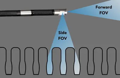 客戶首先使用前視攝像頭進(jìn)行檢查。這種視角使他們能夠快速而徹底地檢查整個(gè)部件。當(dāng)他們穿過波紋管時(shí),他們會(huì)一絲不茍地尋找任何重大缺陷,例如凹痕、劃痕、拉伸區(qū)域或碎片。前視攝像頭對(duì)于此步驟特別有利,因?yàn)樗峁┝藦V闊的視野,使用戶能夠快速準(zhǔn)確地定位,工業(yè)內(nèi)窺鏡以進(jìn)行進(jìn)一步的詳細(xì)檢查。