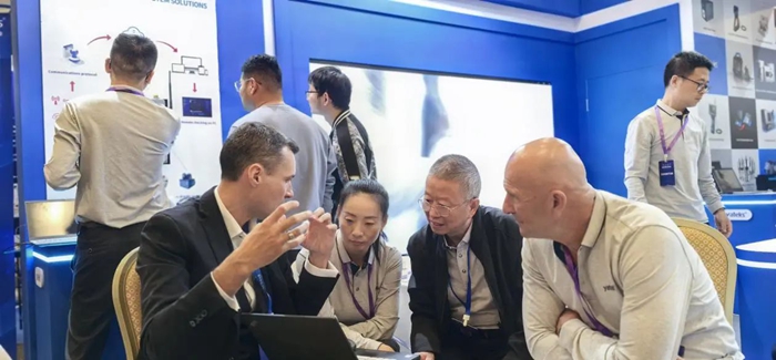亞泰光電工作人員與國際客戶進行技術(shù)交流