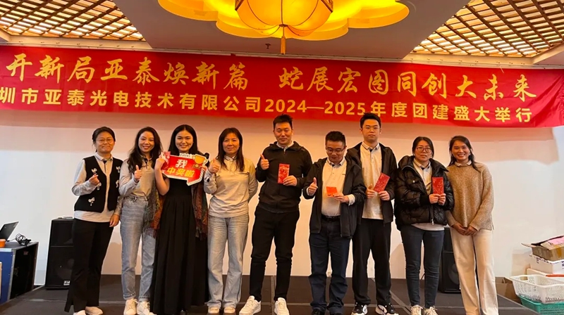 12月13日,深圳亞泰光電迎來(lái)了公司2024—2025年度的團(tuán)建盛典。在這個(gè)充滿希望與挑戰(zhàn)的新起點(diǎn)上,全體員工齊聚一堂,以“龍開新局,亞泰煥新篇;蛇展宏圖,同創(chuàng)大未來(lái)”為主題,共同開啟了一段難忘的旅程。會(huì)場(chǎng)內(nèi)洋溢著對(duì)過(guò)去一年成就的自豪和對(duì)未來(lái)發(fā)展的期待,每一個(gè)微笑背后都蘊(yùn)含著對(duì)公司未來(lái)的堅(jiān)定信心。