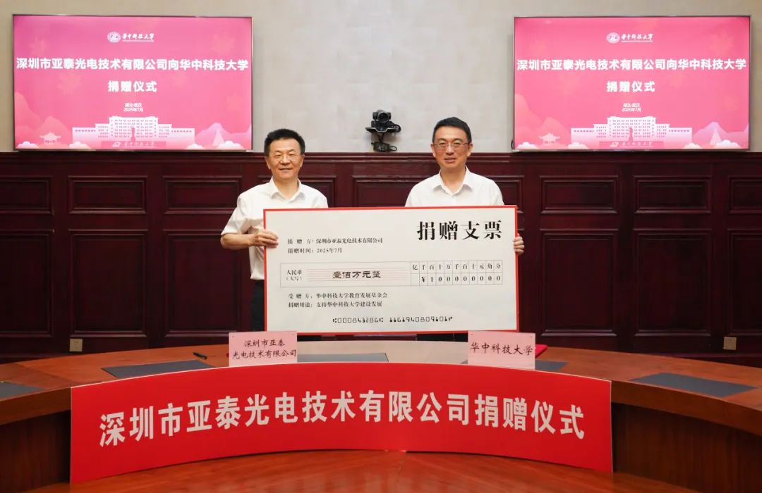 2025年7月17日,在華中科技大學(xué)梧桐語論道廳內(nèi),一場意義非凡的校企合作拉開了帷幕。作為國家級(jí)專精特新“小巨人”企業(yè),深圳市亞泰光電技術(shù)有限公司向其母校——華中科技大學(xué)慷慨捐贈(zèng)了100萬元人民幣設(shè)立“亞泰光電獎(jiǎng)教獎(jiǎng)學(xué)金”,旨在支持教育事業(yè)的發(fā)展,推動(dòng)科技人才的培養(yǎng)。此次捐贈(zèng)不僅是對(duì)母校深厚情感的體現(xiàn),更是未來校企合作邁向新高度的重要里程碑。