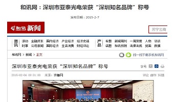 和訊網(wǎng):深圳市亞泰光電榮獲“深圳知名品牌”稱(chēng)號(hào)